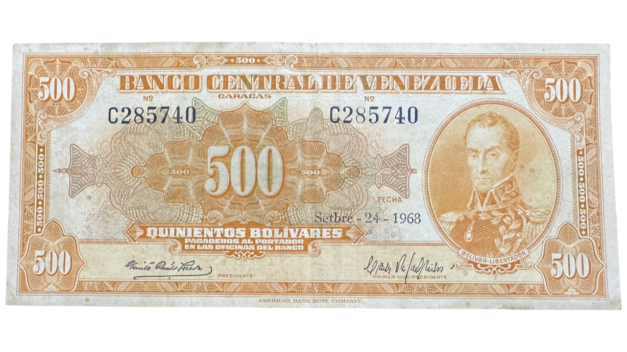 VENEZUELA, 500 Bolívares, Septiembre-24-1968, Serie C6, XF.